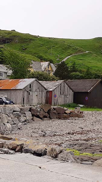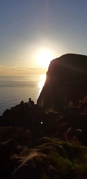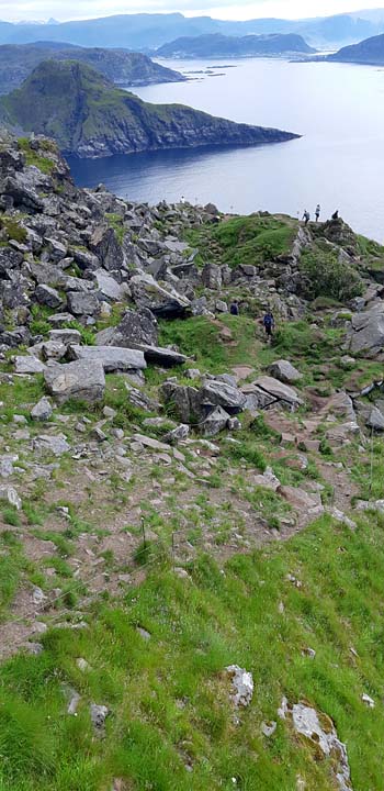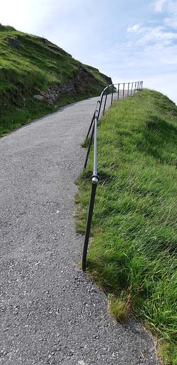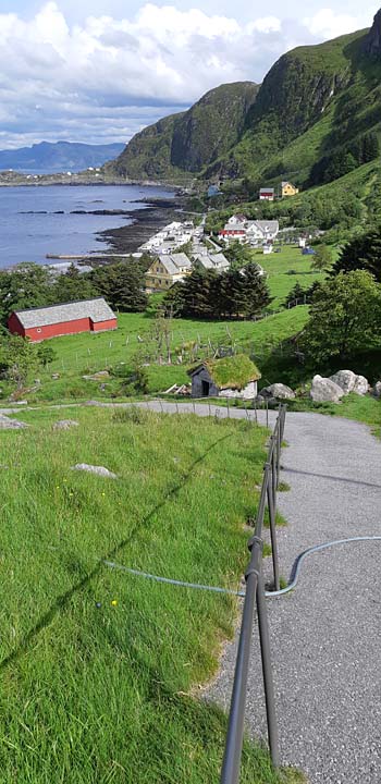 Fågelberget där lunnefåglarna häckar är naturreservat. Vägen upp är en stenlagd stig som alla följer. Den första stigningen är asfalterad och mycket brant (ses i bakgrunden).