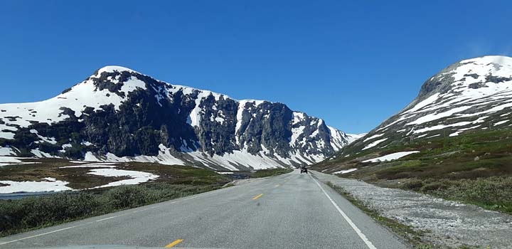 Uppe på högplatån börjar färden ner till Stryn. Tunnlarna är smala och alla kör mycket försiktigt, även de stora lastbilarna.
